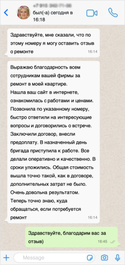Фирма занимается ремонтом офисов, коттеджей, квартир, дач. Осуществляем различные виды ремонтных работ в помещении. Многие клиенты, которые обращались в нашу фирму, оставили положительные отзывы, они находятся на сайте. У нас представлены фотографии интерьеров для ознакомления заказчиков. Мастера сделали больше 1000 заказов качественно и в срок.